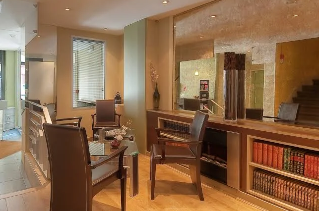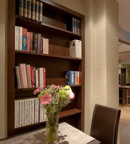 Guests can enjoy a continental breakfast buffet each morning in a bright dining room. The library lounge offers guidebooks for exploring, casual reading, or evening relaxation with a drink. The hotel also offers concierge services, airport shuttle on request, and an electric vehicle charging station in the courtyard.