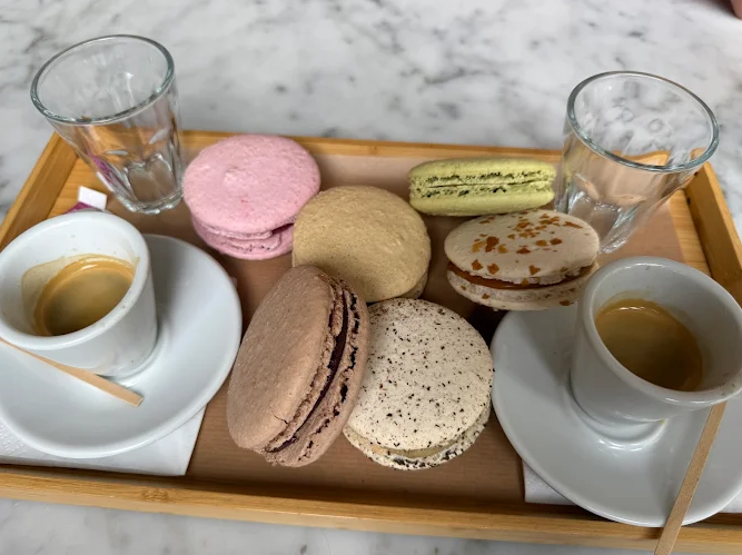 Set within medieval stone walls and adorned with exposed wooden beams, the interior features an open‑kitchen concept where sweets are produced fresh daily. Signature creations includeartisan macarons, delicate tarts, and their much‑talked‑about “Notre‑Dam” apple tart—featuring shortbread, apple mousse, caramelized apples, and a Granny Smith apple fan for an elegant balance of textures and flavor.