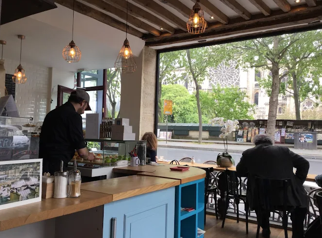 The atmosphere is serene and inviting: perfect in the morning for breakfast, during lunch for a light savory‑sweet bite, or in the afternoon for a relaxing pâtisserie break with cathedral views. The outdoor terrace along the Seine appeals to those seeking al‑fresco moments, while the cosy interior suits visitors looking for comfort with character.