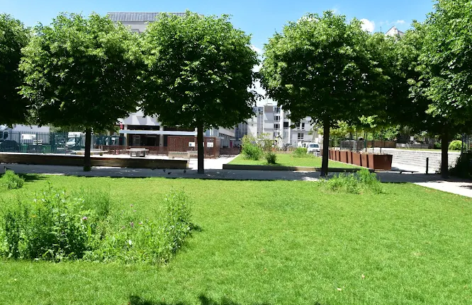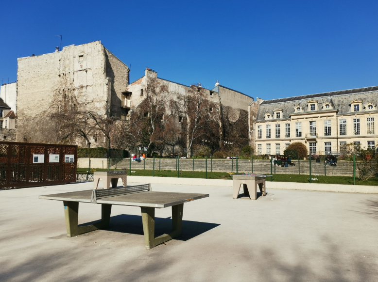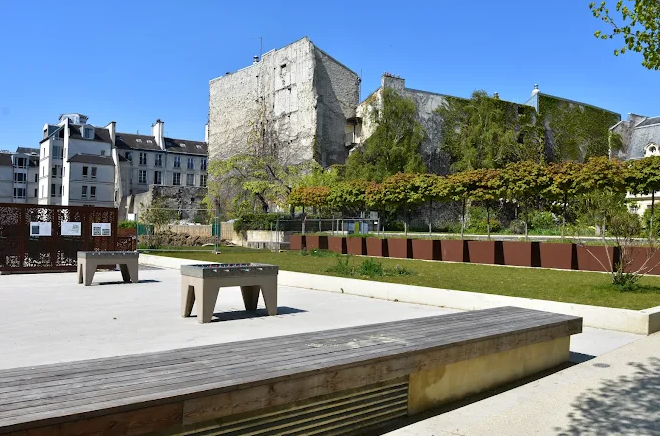 Covering approximately 5,000 m², it stands out as one of the largest newly created green spaces in central Paris in decades. The ambiance is serene and welcoming, appealing to families, walkers and artists alike. Wide, tree-lined pathways (ball-maples and London plane trees) offer refreshing shade. At the entrance, a playground features baby-foot and ping-pong tables (though the latter may sometimes be unavailable).