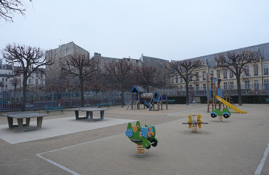 A green oasis in the Marais, offering play areas, urban meadows, and a serene retreat.