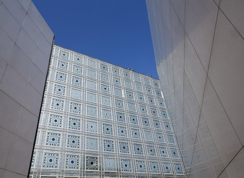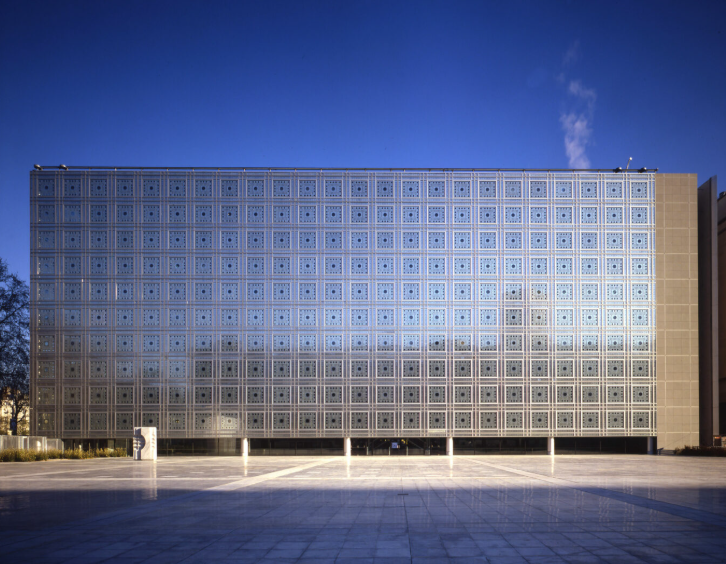 Opened in 1987 on the left bank of the Seine, the Arab World Institute (IMA) is a vivid emblem of cultural exchange between France and the Arab world. Designed by Jean Nouvel and Architecture-Studio, its sleek façade of photo-sensitive metal diaphragms reinterprets the traditional moucharabieh.