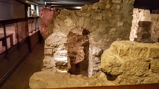 The visit opens with remains of an ancient dock, part of Lutetia’s port, followed by remains of public baths complete with a hypocaust heating system and a fragment of the 4th-century city wall. Visitors then move through medieval foundations, including the Hôtel-Dieu chapel and the foundations of Rue Neuve-Notre-Dame from the 12th century. The journey continues with the 18th-century hospice for foundlings and concludes with traces of Haussmann-era sewers from the 19th century .