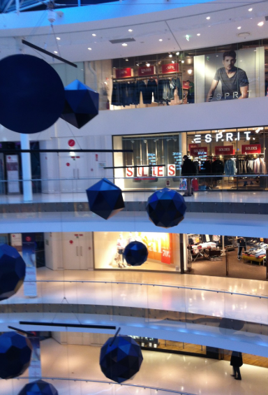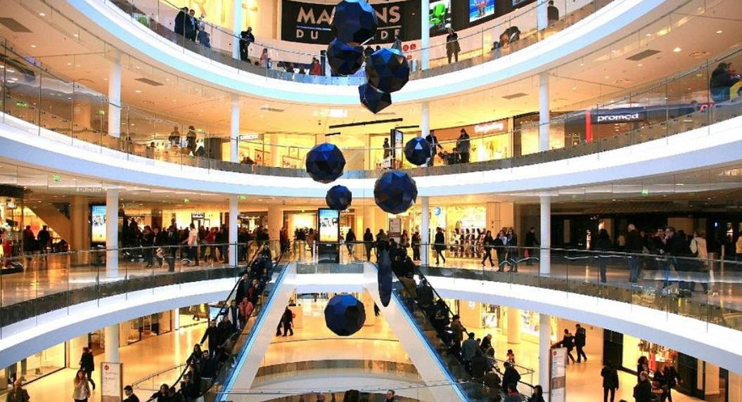 Art lovers will notice the 15 m high sculpture "Grand Mobile" by Xavier Veilhan, originally from the Dynamo exhibition, suspended in an atrium to bridge art and shopping.