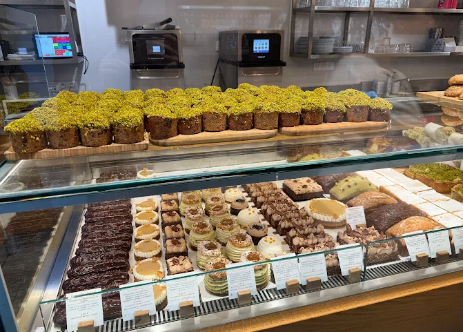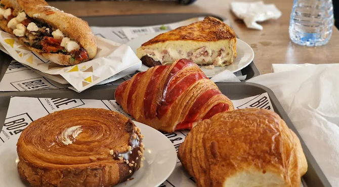 The bread selection is wide and seasonal: classic baguettes, praliné bread, cereal breads, apricot‑cranberry loaves, and olive‑marbled tigré bread. Viennoiseries are pure butter and highly creative, such as raspberry croissants, praliné croissants, NY rolls and cinnamon rolls. Pastries include vanilla or praliné flan, cheesecake, reinvented tiramisu, kouign‑amann, chocolate‑praliné cookie shot and walnut brownies.
