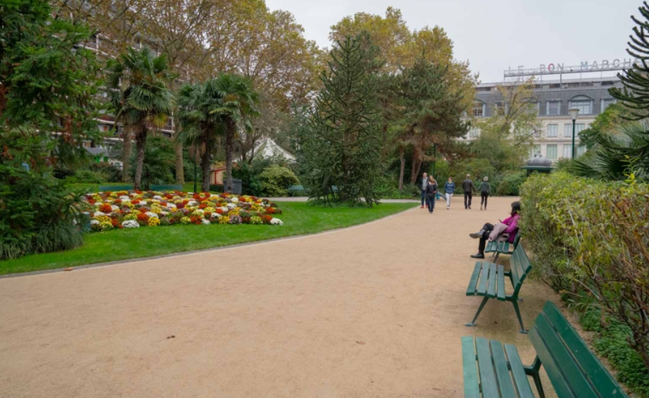 Created in 1870 as “Square du Bon‑Marché,” Boucicaut Square is now a serene green retreat in the heart of Paris’s 7th arrondissement, opposite the Le Bon Marché department store. Spanning 7 202 m², this French-style garden features lawns, flowerbeds and rare trees like Chilean araucarias, palm trees, Judas trees and the uncommon Cunninghamia lanceolata.