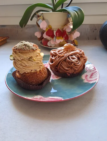 Olivier’s Japanese-inflected pâtisseries are equally bold: try the Mont Azuki (a Japanese twist on Mont Blanc, with red bean vermicelli, cherry blossom cream, meringue and strawberry coulis), Cho Sichuan, soufflé cheesecake, Baba with dates, as well as revisited classics such as Paris-Brest, millefeuille, éclairs and fruit tarts. Butter-rich viennoiseries like cinnamon rolls, praline brioche and raisin croissants round out the menu.
