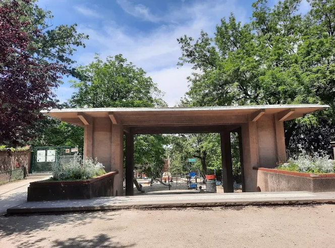 The Butte du Chapeau Rouge Park was laid out in 1939 by architect Léon Azéma, covering 4.7 ha in Paris’s 19th arrondissement, on a historic gypsum quarry site. Its name comes from a once-popular guinguette in Pré‑Saint‑Gervais, a hub for early 20th-century pacifist gatherings, where Jean Jaurès spoke before over 30,000 people on 25 May 1913.