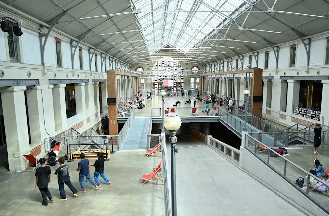 Spanning nearly 39,000 m², CENTQUATRE hosts artist residencies, shows, exhibitions, concerts, performances, workshops, festivals, and free artistic practices (dance, circus, theatre, digital arts). It also features eateries (Grand Central, Café Caché), a pizza truck, organic market, bookstore, and social enterprises like Emmaüs Défi.