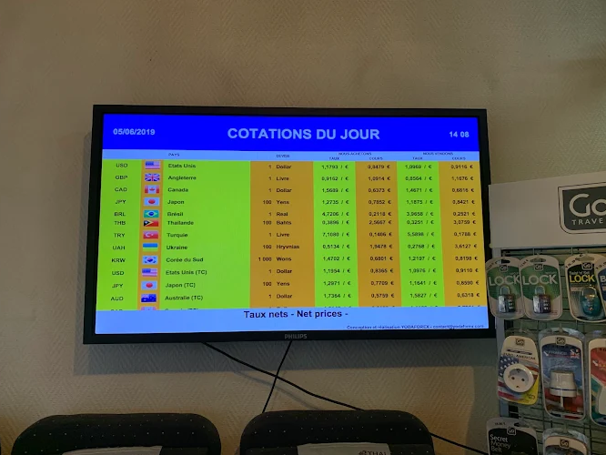 On-site, over 55 currencies are available for purchase or sale—from major currencies (USD, GBP, JPY, CAD) to exotic ones like CFA, THB, or MXN. Rates are clearly displayed, and while labeled “no commission,” a margin is applied. Online reservation locks in the rate, mitigating surprise costs due to market fluctuations.