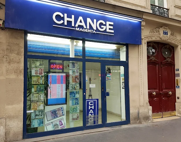 Change Magenta Dollar is a currency exchange office located in Paris’s 10th arrondissement at 77 Boulevard de Magenta, just minutes from Gare de l’Est. Open from Tuesday to Saturday from 10 AM to 6 PM (closed Monday and Sunday), it offers buying and selling of a wide range of currencies: USD, GBP, CAD, CHF, JPY, CNY, KRW…