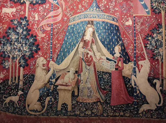 Your visit begins in the solemn frigidarium, before you ascend into the Gothic mansion with elegant vaults and a central courtyard. The tour comprises 21 chronological rooms showcasing Romanesque sculpture, Limoges enamels, stained glass, goldsmith pieces, illuminated manuscripts, and medieval furniture. The highlight is the tapestry chamber, home to the six-piece Lady and the Unicorn (1490–1510), an enigmatic masterpiece representing the five senses and desire—flagship of medieval French tapestry.