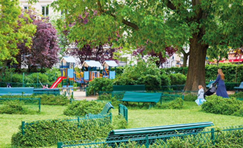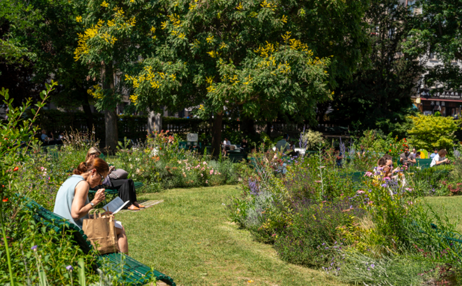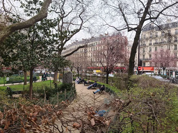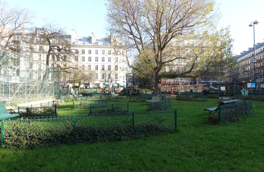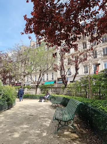 A peaceful urban oasis at the foot of La Trinité Church, ideal for a relaxing break in Paris’s 9ᵗʰ arrondissement.