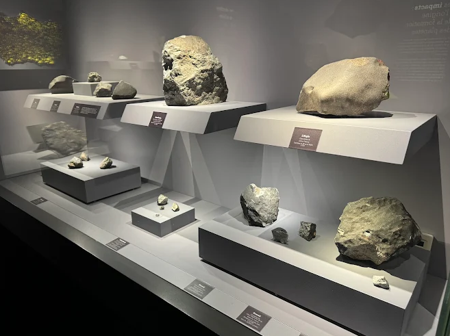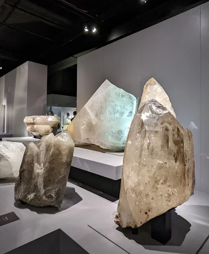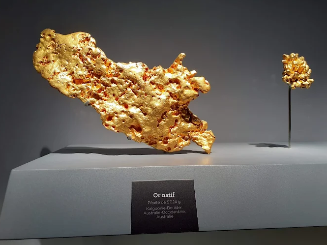 Spanning nearly 2,000 m² across a central nave and two side wings, it houses around 770,000 specimens: rocks, minerals, crystals, gemstones, meteorites (including Martian ones), and mineral artworks. The permanent exhibition “Treasures of the Earth,” launched after extensive renovation in 2014, showcases nearly 600 items, with around thirty giant crystals and compelling phenomena like fluorescence.