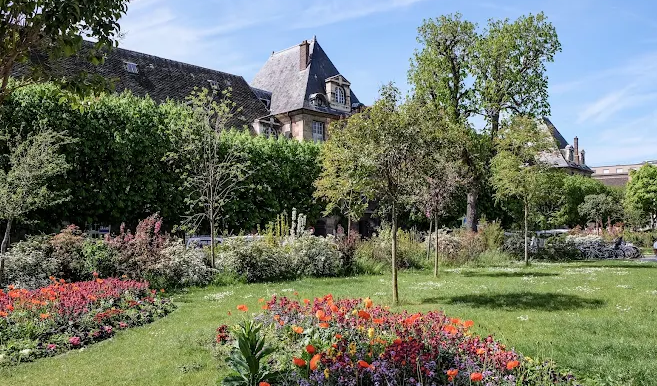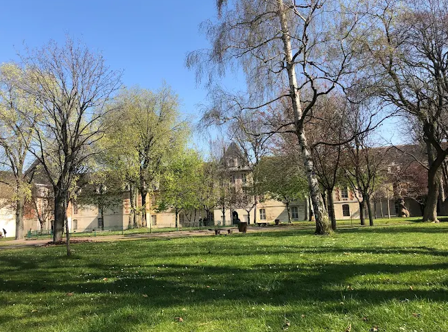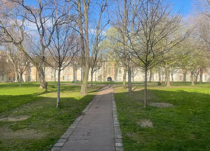 Created in the early 17th century by Henry IV, the Hôpital Saint‑Louis Garden echoes the design of royal squares like Place des Vosges. Conceived by architects Claude Chastillon and Claude Vellefaux, it forms a 120m-square courtyard surrounded by brick-and-stone buildings that once housed patients and staff.