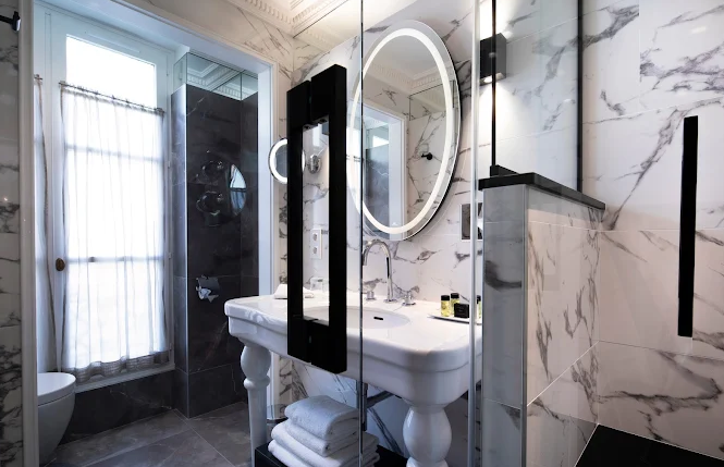 With only 30 rooms and suites, the hotel provides an intimate, upscale atmosphere. Rooms come in several categories: Classic (14 m²), Superior with Pantheon view, Balcony rooms, Deluxe with terrace, Junior Suites, and a Romantic Junior Suite. All rooms include air-conditioning, fiber Wi‑Fi, flat-screen TV, minibar, safe, hairdryer, and premium Heeley toiletries. Suites also feature Nespresso machines, bathrobes, and slippers.