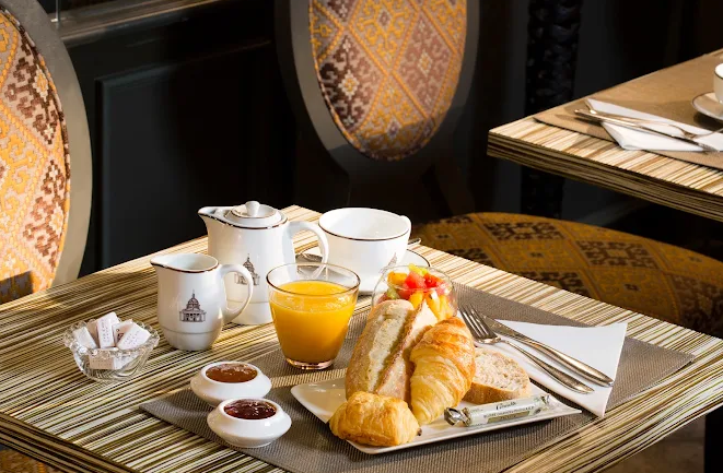 The 24‑hour front desk offers multilingual service (French, English, German, Italian, Portuguese, Spanish), concierge assistance, ticket booking, and restaurant recommendations . Breakfast is served from 7 to 11 AM in a cozy basement room or in-room (2 € supplement), and breakfast inclusion depends on the rate.