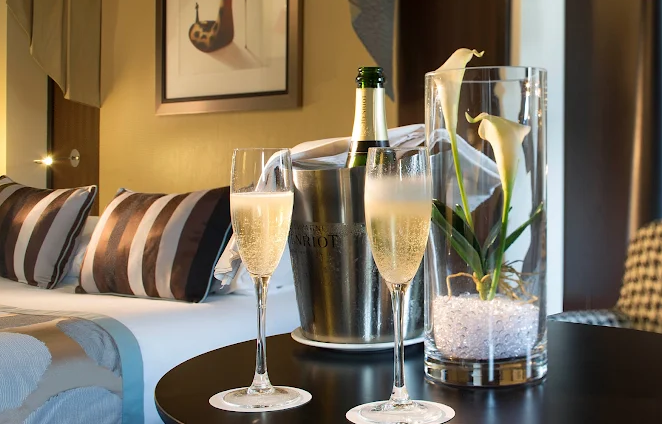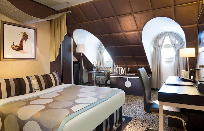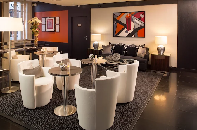 Mornings begin in a warm rotunda breakfast room (breakfast available at an extra charge), where guests can enjoy a cozy, intimate atmosphere . While the hotel has no on‑site restaurant, its signature bar “Le Must”, featuring a charming bilingual library, is perfect for unwinding over cocktails and gourmet platters .