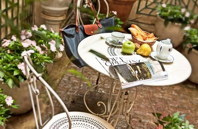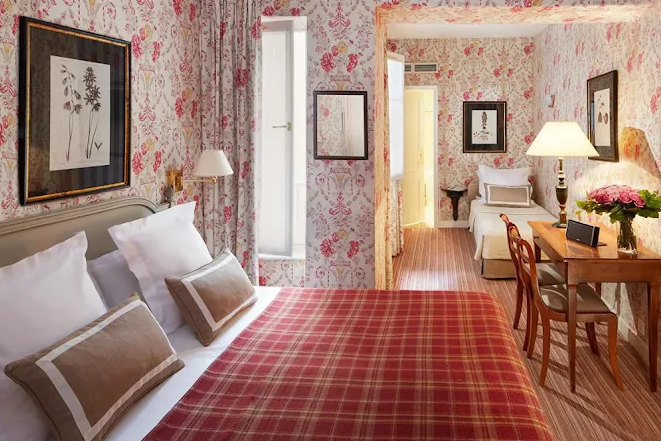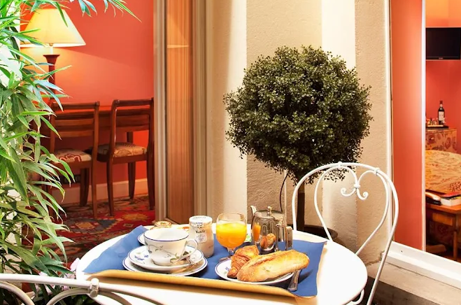 The ambiance is elegant yet relaxed, inviting guests to explore nearby cultural treasures or unwind in the courtyard. Visitors can easily walk to museums, luxury shops, and famous Parisian cafés.