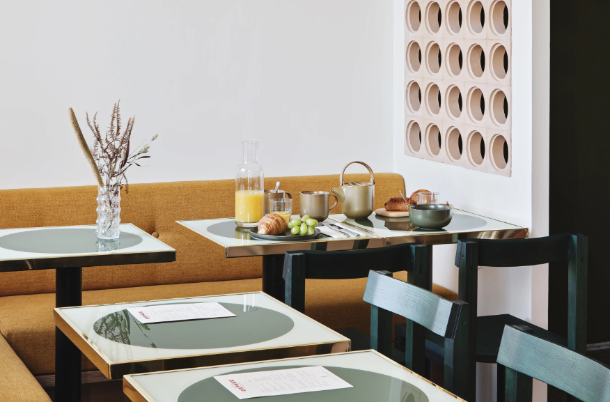 The bar, designed as a sunlit corner, serves drinks and homemade treats, and a continental buffet breakfast (~€16) is served either in a cozy breakfast room or in your room . A beautifully tiled hammam in the basement offers the ultimate relaxation space.