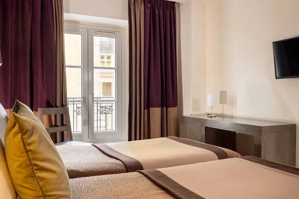 Hotel Saint‑Pierre is a charming 2‑star hotel nestled in the heart of the esteemed Latin Quarter, right across from the École de Médecine and within walking distance of Saint‑Germain‑des‑Prés, the Luxembourg Gardens, the Sorbonne, and Notre‑Dame. It features 43 to 46 air‑conditioned rooms, spread across six categories (single, double, twin beds, triple – some with Eiffel Tower view –, quadruple), providing a tranquil haven after a day of exploring Paris.