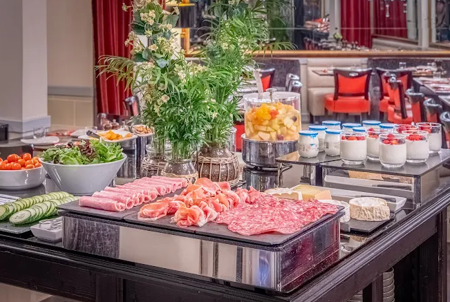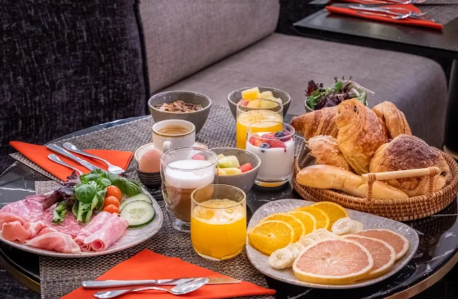Upon arrival, guests are welcomed into a cozy lobby where plush armchairs create an inviting atmosphere. The 24/7 Trianon lounge serves a hot and cold buffet breakfast from 7 am to 11 am, plus afternoon tea and snacks featuring Dammann Frères teas, pastries and aperitifs. Convenient amenities include laundry and pressing services, safe deposit, hairdryer, and a business center with photocopier and fax, making it perfect for business travelers .