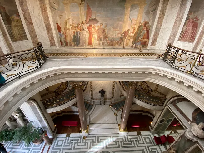 Upon arrival, you step into an elaborately decorated vestibule, leading to the Winter Garden — a luminous marble court with a glass roof and a majestic staircase, a true architectural marvel reminiscent of grand 19ᵗʰ‑century designs.