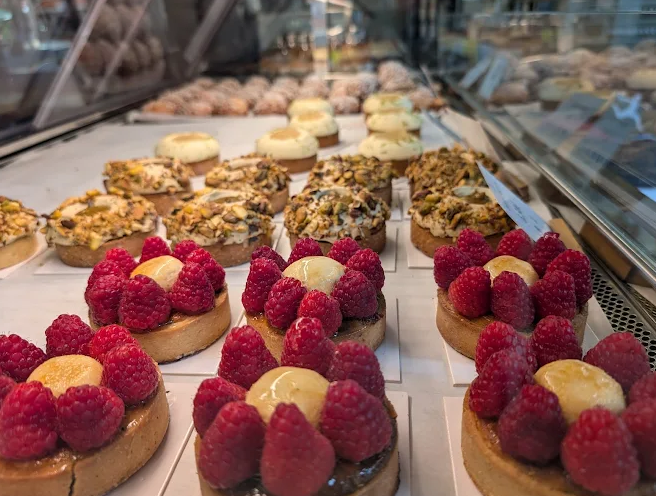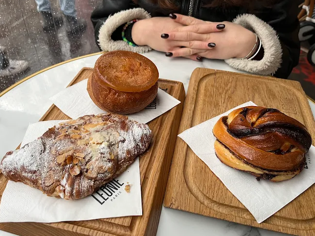 You’ll find signature breads such as the Léonie baguette, Tordu du Gers, Tourte de Meule, and more inventive loaves like Cœur de Sarrasin or Vollkornbrott. Viennoiseries are generous and expertly crafted – think butter croissants, cinnamon rolls, babka, kouign‑amann – regularly praised among the best in Paris.