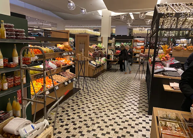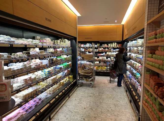 Visitors can wander through themed zones—such as a 96‑drawer tea cabinet, truffle and Iberian counters, seasonal fruit stalls, fish counters and a 1,500 m² cellar featuring approximately 3,000 wines and spirits—and dine on site at “La Table” on the first floor or at Balthazar wine bar. The bespoke “Ma Cave sur mesure” service, introduced in 2022, offers a two‑session sommelier consultation to build a personalized wine cellar for €75.