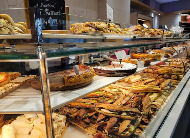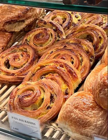 The shop offers a full range of products: traditional baguette, specialty breads (whole‑meal, multigrain, Viking, flaky rye), crisp viennoiseries (croissants, pain au chocolat), and inventive pastries (éclairs, apricot‑pistachio tart, seasonal creations). They also serve quick lunch options like baguette sandwiches, quiches, salads, and well‑priced breakfast combos.