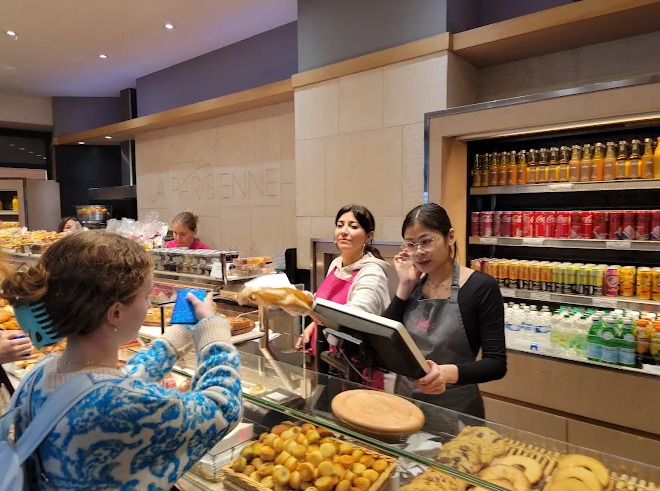 The atmosphere is warm and authentically Parisian: a small interior seating area, a charming sidewalk terrace, and friendly, often bilingual staff that enhance the experience. The clientele includes locals, students (near NYU Paris), and tourists seeking gourmet pastries on a budget.