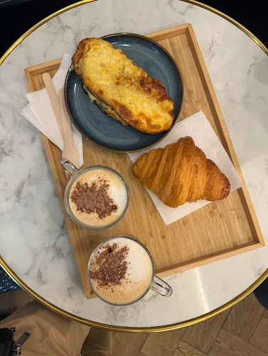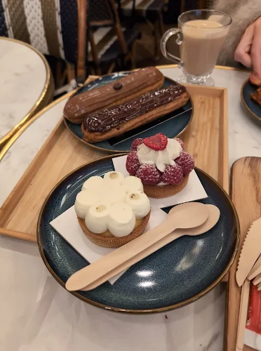 Signature items like the white‑chocolate viennoiserie and pistachio éclairs are praised for their creativity and refined flavor. Optional offerings sometimes include gluten‑free pastries or savory options like quiche, croque‑monsieur, and paninis.