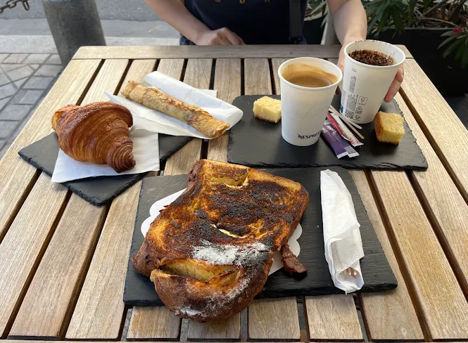 The atmosphere is friendly and relaxed; staff are known for their warm welcome and occasional freebies—many customers mention being offered extra pastries when mistakes occur. Regulars include locals, nearby office workers, early risers catching their train, and neighborhood brunch‑goers. Breakfast times get busy, especially after 8 AM, but terrace seating offers a pleasant start to the day.