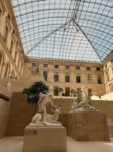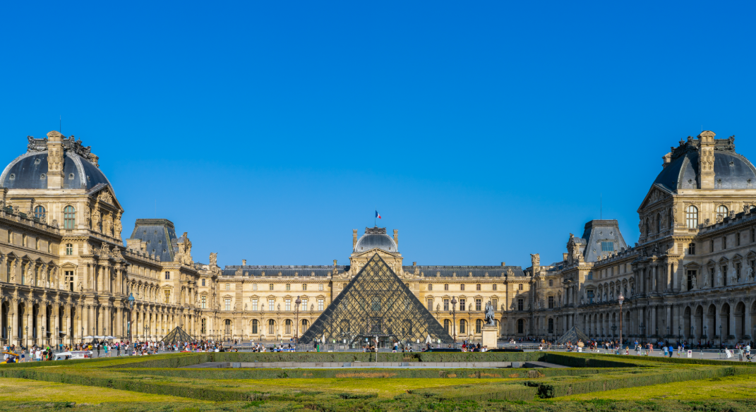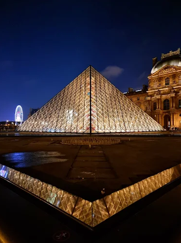 A modern emblem at the heart of the Louvre, where glass and light guide visitors into art.