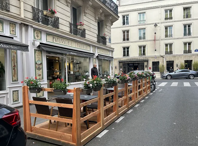 Founded in 2006 at 86 rue du Rocher, Maison Hecht is an artisan bakery‑pâtisserie specializing exclusively in organic products. Its façade, adorned with green‑toned faïence depicting traditional bakery scenes, signals both elegance and commitment to bio sourcing. The predominant green hue reflects France’s organic agriculture label—a promise fulfilled in taste and quality.