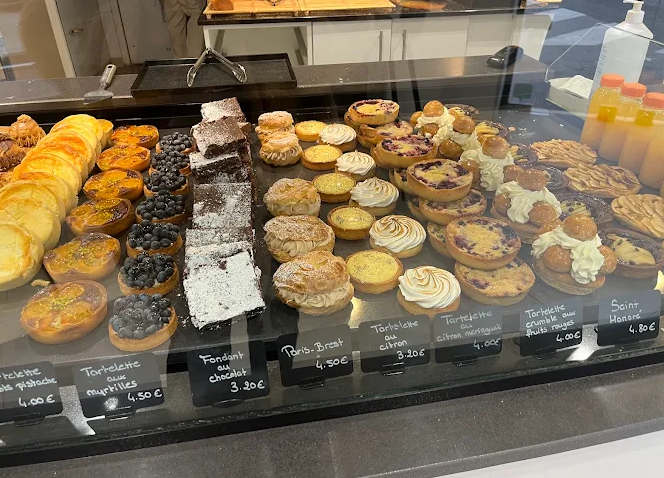 Pastries, while sometimes described as slightly dry, include well‑executed classics — croissants, pain au chocolat, brioches, and pain aux raisins. Traditional French pastries—flans, fruit tarts, Paris‑Brest, millefeuille—are done simply and satisfyingly, though not extravagant.