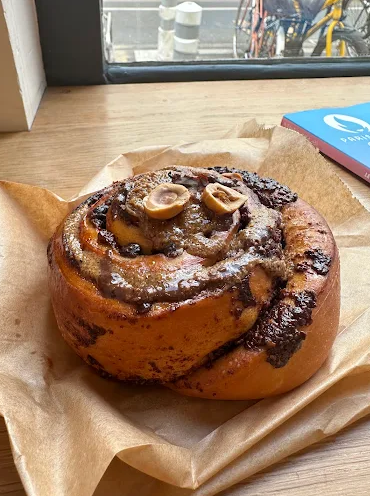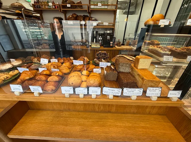 The clientele includes locals, neighborhood workers, and food lovers seeking artisanal bread and sophisticated pastries. The lunch menu offers sandwiches (~€6.50) like tofu‑peanut creations or seasonal fillings on fresh loaves.