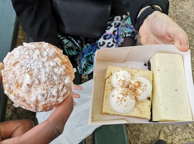 The signature “Milligramme bread,” made with rye and buckwheat, is known for its moist crumb and nutty depth. Bakery pastries – cream-filled choux, frangipane crumble, coconut bar – stand alongside creative sweets like Oreo‑vanilla cheesecake and house-made cookies.