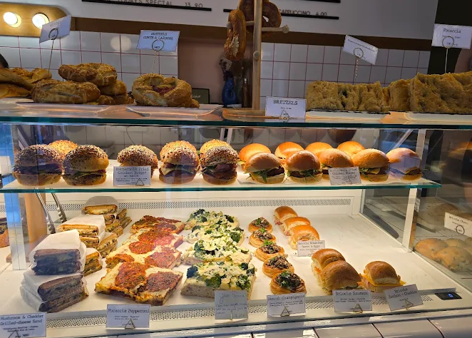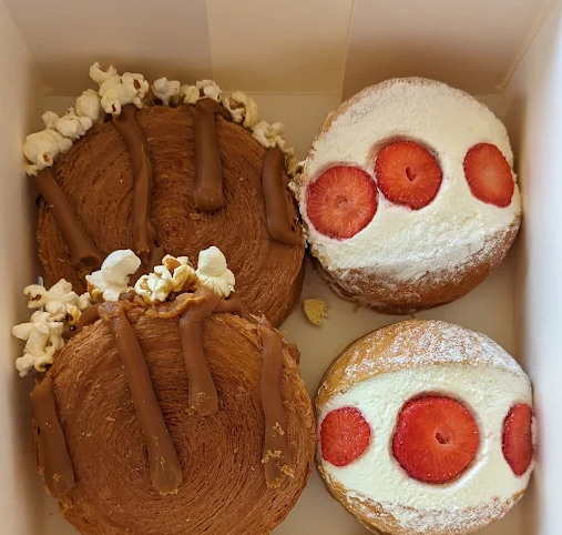 From 7 a.m. (8 a.m. weekends), the international, qualified team prepares signature breads (e.g. lemon spelt, buckwheat-rye with linseed and pumpkin seeds…), traditional baguettes and standout viennoiseries like New York Rolls (pistachio or caramel popcorn), mango cruffins, and maritozzo, all visible from the street.