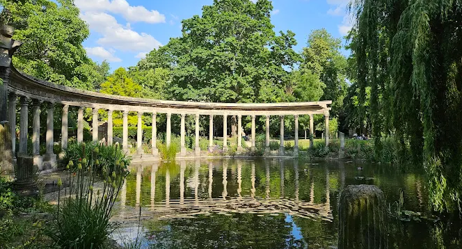 Monceau Park, an 8.2‑hectare romantic English-style garden nestled between Paris’s 8th and 17th arrondissements, enchants with its whimsical architecture and lush paths. Designed in the late 18th century by Duke of Chartres (Philippe-Égalité) and architect Carmontelle, it features a Chinese pagoda, Egyptian pyramid, Mars temple, naumachia (a pond with Corinthian columns), and a Renaissance arch—all elements of the Duke’s “land of illusions”.