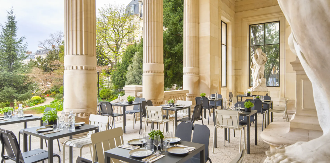 Practical details: entrance via Avenue Pierre Ier de Serbie; open Tuesday to Sunday 10 AM–6 PM, with late openings until 9 PM on Thursdays and Fridays; closed Mondays, Jan 1, May 1, Dec 25. Seasonal dining at “Les Petites Mains” on the terrace overlooking a garden and the Eiffel Tower resumes in summer 2025. Amenities include lockers, a well-stocked shop, restrooms, Wi‑Fi, a defibrillator, and Vigipirate security.