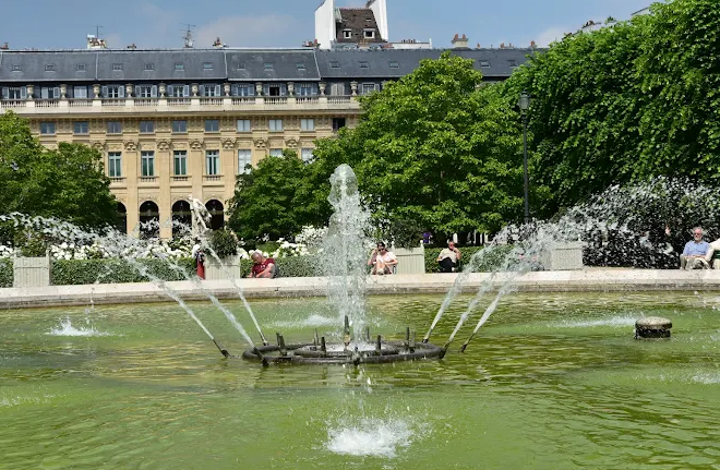 Today, the garden offers a tranquil retreat where Parisians stroll under rows of lime and chestnut trees, read beneath shaded canopies, or enjoy the gentle spray of the central fountain. Among its highlights are Daniel Buren’s black-and-white striped columns ("Les Deux Plateaux"), controversial at first in 1986 but now synonymous with the site. Pol Bury’s contemporary fountain adds a sparkling touch to the setting.
