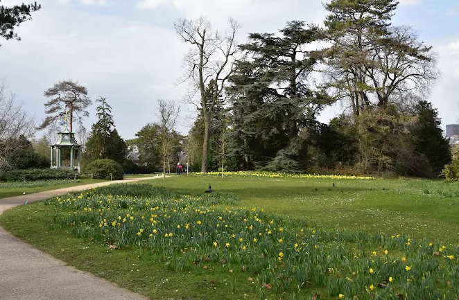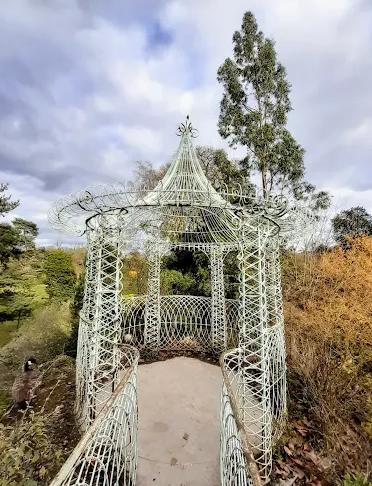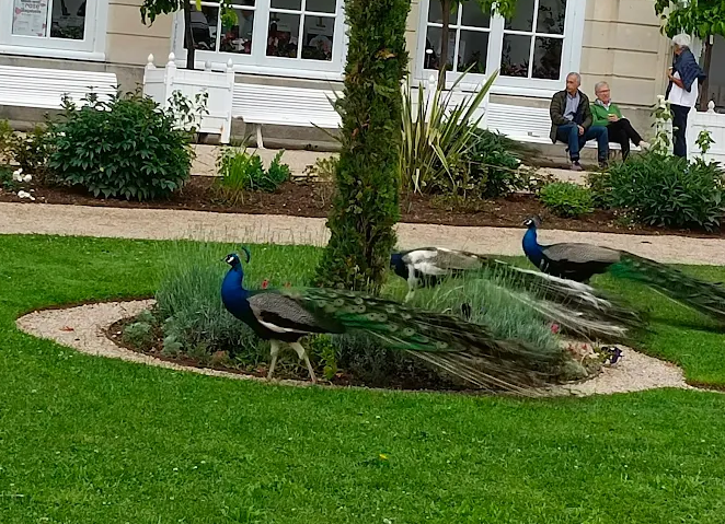 The park is known for its free-roaming peacocks, often found near iris and perennial flower beds, lending a magical ambiance. The Pagoda, rebuilt in 1996 to replace the original 1867 structure, adds to the English-Chinese romantic character of the setting.