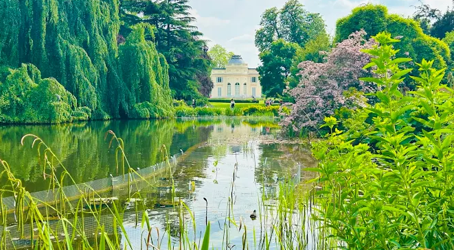 Created in 1775 around the château known as the “Folie d’Artois,” built in 64 days as part of a bet between Marie‑Antoinette and the Comte d’Artois, Parc de Bagatelle has become one of Paris’s botanical jewels. Spread over 25 ha and now part of the City of Paris Botanical Garden, it offers a succession of enchanting settings: English-style gardens, historic follies (pagoda, kiosk, artificial grottoes, waterfalls, bridges), an orchard-garden, and the famous rose garden.