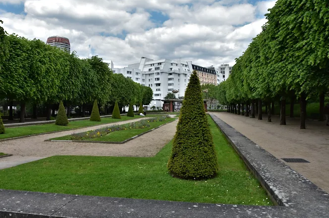 A special feature: “Les Rochers dans le ciel” by Didier Marcel is a sculptural highlight relocated here from Place Farhat-Hached. The park commemorates Marshal François-Christophe Kellermann, celebrated for the Battle of Valmy, after whom both the park and adjacent boulevard are named.