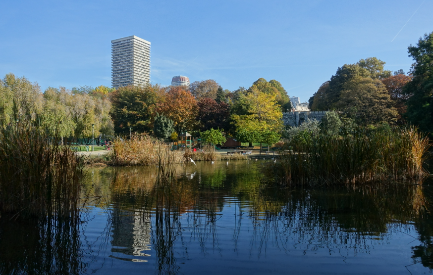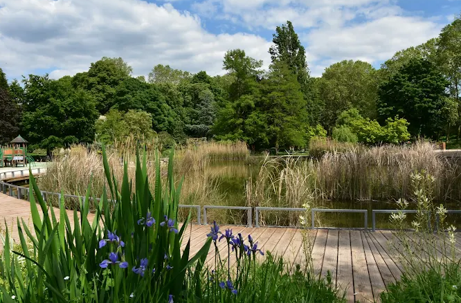 Seasonally, the park hosts mobile play libraries offering free activities for kids in summer. Urban wildlife such as moorhens, parakeets, and lagoon birds mingle with domestic farm animals for a charming contrast. The plant life includes remarkable trees like bald cypresses, plane trees, pacanier, and Cryptomeria japonica, evoking a scenic ambiance similar to the Buttes Chaumont.