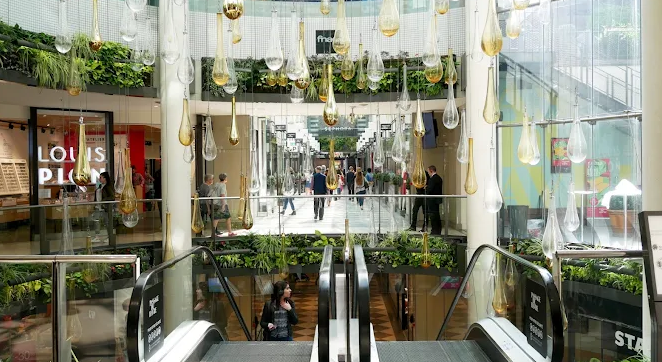 A chic, light‑filled covered shopping arcade blending retail therapy and green serenity just steps from Gare