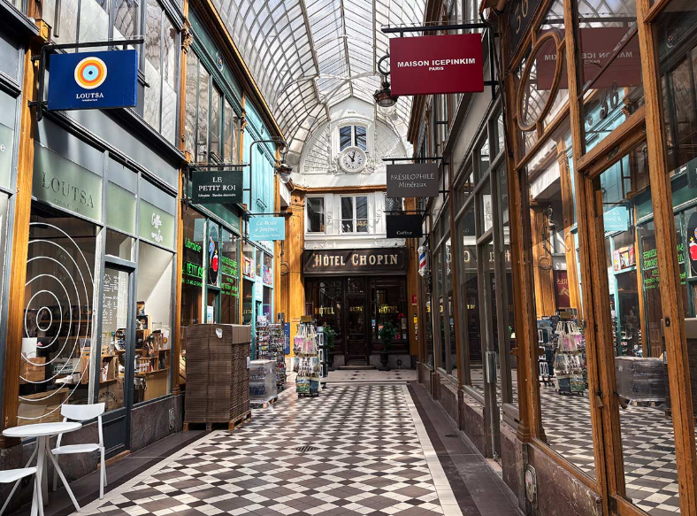 Fun fact: the passage has been featured in films like The Tourist (2010) with Angelina Jolie and Johnny Depp. A sensational fake gold ingot exhibition caused excitement in the 19th century . Acquired in 2018 by a Dassault real estate fund, the arcade is now carefully preserved with respectful updates.