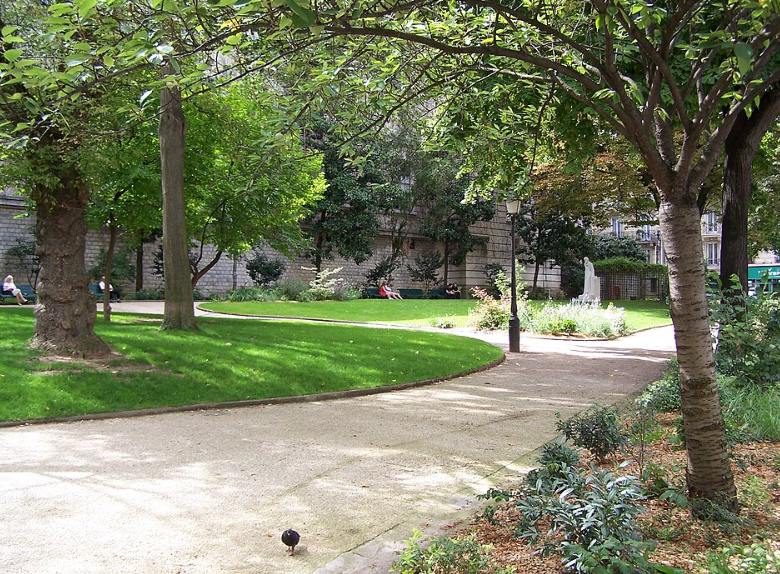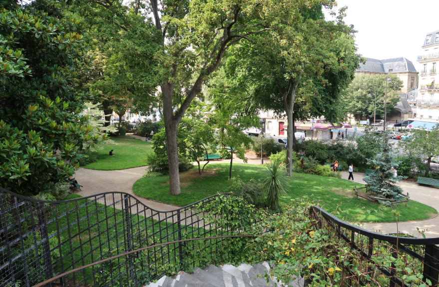 Created in 1868 at the foot of the former École Polytechnique’s listed buildings, Paul Langevin Square (originally “Monge Square”) spreads across 4,328 m² of exotic trees – magnolias, sophoras, sycamores, ashes, American walnut and honey locust – nestled in Paris’s lively 5th arrondissement.