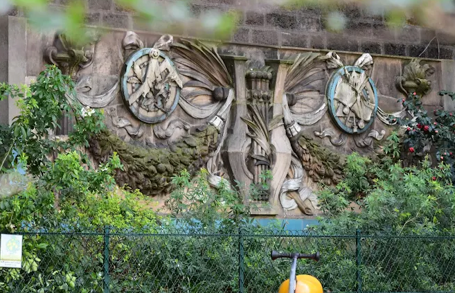 At its heart stands a monumental staircase, lushly covered in ivy and Turkestan knotweed, once leading to classrooms. At its base, the Childebert Fountain (1715–1717) adds a historical, cooling touch. The site also houses remnants of the former City Hall (Renaissance niches and ceramics from the 1889 Universal Exposition), as well as a stone statue of François Villon from 1947, by René Collamarini.